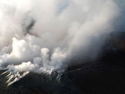 火山喷发时,岩浆从地下上升到地表,释放出大量的热能和气体。这些气体包括水蒸气、二氧化碳、硫磺等,它们在火山喷发过程中释放出来,形成了烟雾和火山灰。
